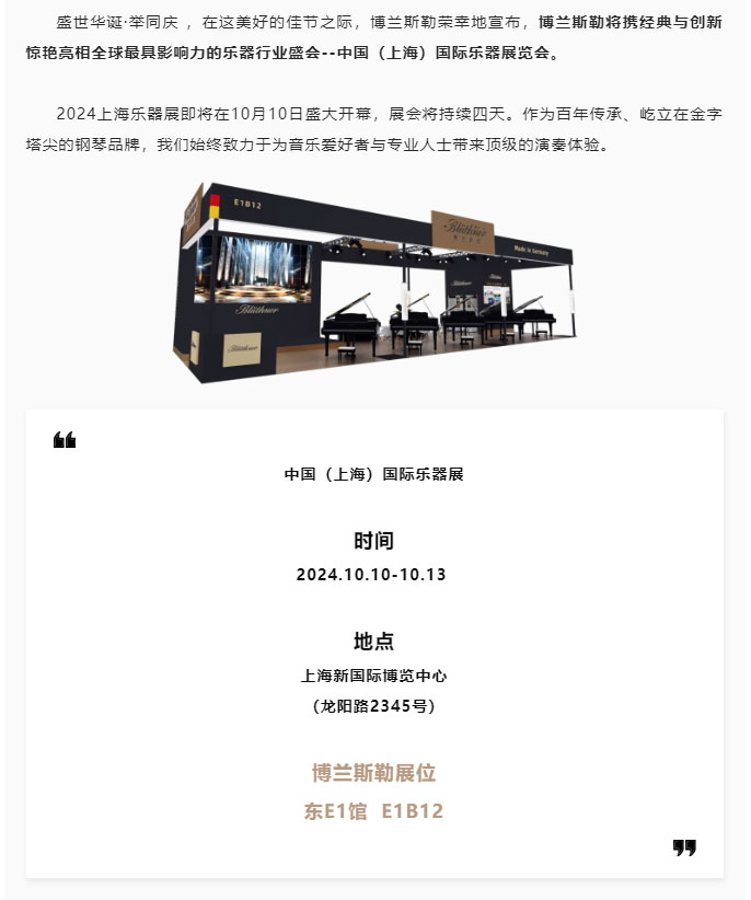 2024上海樂器展即將來襲丨博蘭斯勒將攜經(jīng)典與創(chuàng)新驚艷亮相!