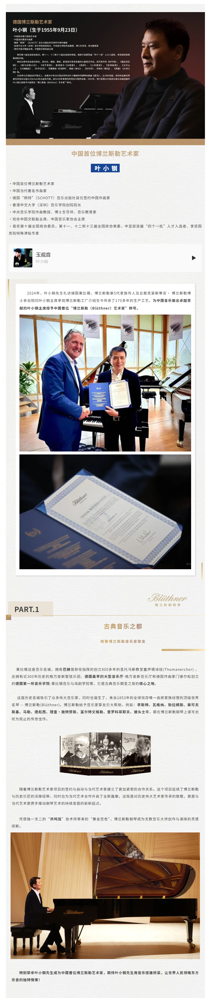 中國(guó)首位博蘭斯勒藝術(shù)家——葉小鋼先生