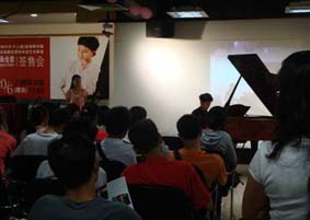 演奏中,觀眾都被跌宕優(yōu)美的旋律所吸引,現(xiàn)場(chǎng)非常安靜。演奏完畢,觀眾全體都熱烈鼓掌贊好。牛牛也高興地向大家介紹這兩首曲子是肖邦非常著名的練習(xí)曲《離別》與《革命》,并告訴現(xiàn)場(chǎng)觀眾這兩首曲子的在哪些地方體現(xiàn)出曲子的感情境界。這兩首曲子都收錄在了這張發(fā)行的碟中。