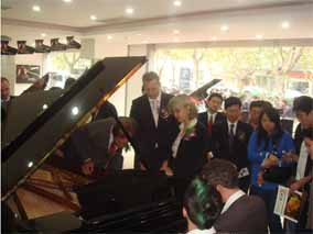 2007年10月25日,在南京樂博琴行德國博蘭斯勒鋼琴展廳 門口懸掛著中德兩國的國旗,門前張燈結(jié)彩。早上十點(diǎn)鐘,德國博 蘭斯勒鋼琴的出產(chǎn)地-萊比錫市長(zhǎng)榮格先生(MR.BURGHARD JUNG)以及德國萊比錫政府代表團(tuán)及德國媒體的代表出席德中同 行-德國博蘭斯勒鋼琴展(10月25日-11月8日)的剪彩儀式,德 國萊比錫市長(zhǎng)榮格先生,博蘭斯勒總裁博思進(jìn)先生,南京樂博有限 公司總經(jīng)理姚廣生先生為為期兩個(gè)星期的德國博蘭斯勒鋼琴展剪彩 。剪彩儀式結(jié)束后,在博蘭斯勒總裁博思進(jìn)博士及博蘭斯勒鋼琴中 國公司總經(jīng)理方陽先生的陪同下,德國萊比錫市長(zhǎng),萊比錫前任市 長(zhǎng)及來賓們參觀了博蘭斯勒鋼琴展。博蘭斯勒旗下的歐米勒形象代 言人歐米勒孖寶為遠(yuǎn)道而來的貴賓再次表演絕技。在大家的邀請(qǐng)下 ,博蘭斯勒總裁博思進(jìn)博士也為在場(chǎng)的貴賓獻(xiàn)上一首世界名曲。博 蘭斯勒黃金般的音色令德國萊比錫市長(zhǎng)榮格先生以及前市長(zhǎng)躍躍欲 試。參觀完鋼琴展,正當(dāng)萊比錫市長(zhǎng)榮格先生要離開時(shí),前來購琴 的觀眾紛紛邀請(qǐng)市長(zhǎng)在其購買的歐米勒鋼琴上簽名以作留念。博蘭 斯勒鋼琴展開展后,博蘭斯勒總裁博思進(jìn)博士以及博蘭斯勒旗下的 歐米勒形象代言人歐米勒孖寶親臨現(xiàn)場(chǎng)簽售鋼琴。就在開展的第一 天,江蘇樂博漢中店銷售的鋼琴近20臺(tái)博蘭斯勒旗下歐米勒鋼琴。