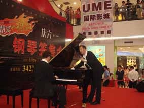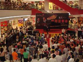 5月26 、27日下午“博蘭斯勒音樂基金會(huì)”主辦的 “歐米勒 孖寶”《鋼琴也瘋狂》全國巡演南方廣州站見面會(huì)分別在由廣百新 一城及廣百天河店拉開了為時(shí)一個(gè)半鐘的極其瘋狂的瘋狂演出見面 會(huì)。當(dāng)天現(xiàn)場承辦方廣百出動(dòng)了十余名保安負(fù)責(zé)維護(hù)現(xiàn)場,四名貼 身保護(hù)“歐米勒孖寶”,層層的人群把現(xiàn)場一樓至六樓圍得水泄不 通。