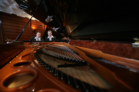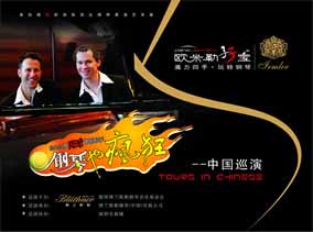 10年前 , 他們正式組成“歐米勒孖寶(Pianotainment)” 鋼琴組合 , 那是他們走向輝煌的開始:熟練自如的雙手在黑白分明 的琴鍵上翻飛跳躍,一曲曲快樂的音符就從他們的指間順流而出 。隨著歐米勒孖寶5張CD的成功問世 , 他們隨之聲名鵲起 , 在柏林 、巴黎、倫敦、紐約、拉斯維加斯等世界著名大都市的國際舞臺(tái)上 演奏。如今歐米勒孖寶已蜚聲樂界 , 成為歐美鋼琴明星,給古老的 鋼琴演奏形態(tài)注入了新的活力 , 并多次摘走包括英國牛津鋼琴挑戰(zhàn) 賽的“最佳創(chuàng)意獎(jiǎng)”等在內(nèi)世界各地的大小獎(jiǎng)項(xiàng) , 藝術(shù)事業(yè)蒸蒸日 上,如日中天。