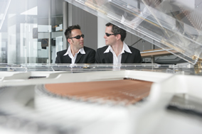 您見過用網(wǎng)球彈鋼琴嗎?一對(duì)來自德國的國際頂尖鋼琴表演藝 術(shù)家Pianotainment鋼琴組合, 他們不僅可以用手指演奏出精彩 的音樂,而且還可以用網(wǎng)球、拳頭等不同的花樣來詮釋鋼琴音樂 , 令無數(shù)的觀眾在臺(tái)下如癡如醉激烈歡呼 , 表演現(xiàn)場(chǎng)喝彩的聲浪此起 彼伏,他們 用帶有魔力般的 四手玩轉(zhuǎn)鋼 琴,因此他們獲得全球鋼 琴頂級(jí)品牌—被譽(yù)為德國國寶的博蘭斯勒( blüthner )鋼琴旗下 歐米勒鋼琴代言人的殊榮 , 并把他們鋼琴組合的中文名命名為“歐 米勒孖寶”。他們獨(dú)具魅力的鋼琴演奏風(fēng)格讓更多的人開始喜歡鋼 琴并成為鋼琴愛好者,原來鋼琴也可以與你這樣的親近與你這樣的 貼近 , 一下子拉近鋼琴與大眾之間的距離,這也充分體現(xiàn)了博蘭斯 勒旗下源于 1818 年德國萊比錫的歐米勒鋼琴的設(shè)計(jì)理念——傳 承經(jīng)典,啟示未來。