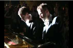 歐米勒孖寶:大寶·斯蒂芬( Stephan Weh )與小寶·麥 克(Marcel Dorn)出生于德國阿爾卑斯山脈的一個(gè)小山村。從小 一起學(xué)鋼琴并一同參加各種音樂會(huì)。他們很早就表現(xiàn)出了超越常人 的音樂天賦:時(shí)常在貝多芬和莫扎特曲目的演奏中自由添加一些音 符, 令鋼琴教授們煩惱不已;大寶·斯蒂芬(Stephan Weh)在 學(xué)校的音樂會(huì)上演奏方法不僅與眾不同,而且在演奏時(shí)加入了即興 的發(fā)揮而技驚四座;小寶·麥克(Marcel Dorn)的琴譜上寫滿教 授對(duì)演奏原始音符的各種要求 , 但這些工作都是徒勞的,因?yàn)樗麄?仍然我行我素、一如既往的遵循著自己的演奏習(xí)慣去演繹曲目和詮 釋音樂, 他們認(rèn)為一成不變的演奏形態(tài)不足以發(fā)揮音樂的魅力, 只有無拘無束的演奏方式才能作出最出色的音樂。他們 在 慕尼黑 音樂學(xué)院深造并榮膺大學(xué)獎(jiǎng)?wù)拢瑑蓚€(gè)人經(jīng)常喜歡在一起無比默契的 聯(lián)袂演奏一支支動(dòng)聽的曲子 , 珠聯(lián)璧合的四手聯(lián)彈給觀眾帶來無數(shù) 的歡樂。