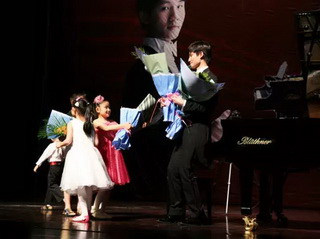 離音樂會開始還有一個半小時,熱情洋溢的觀眾從各地趕來并陸續(xù)入場,這次的觀眾中大部分是家長帶領(lǐng)學(xué)琴的兒童,小朋友們都對這位榜樣和偶像充滿期待。會場里座無虛席,連過道上也站滿了人,在近2000名觀眾的熱烈歡呼、掌聲中,天才鋼琴家牛牛閃亮登場,獨奏會正式拉開序幕。年僅18歲的他臉龐稚氣未脫,但站在舞臺中央,坐在鋼琴前就顯露出非凡的氣度與沉著。一曲巴赫帕蒂塔的《NO.5BWV81》拉開了獨奏會的序幕,隨后,牛牛傾情彈奏了貝多芬鋼琴奏鳴曲《熱情》,這首曲子熱烈、狂奔、激情大氣,觀眾耳熟能詳,倍受感染與感動,現(xiàn)場氣氛高潮迭起。在一個半小時的時間里,牛牛還彈奏了肖邦《第一敘事曲》,舒伯特即興作品90號第二首和第四首,斯克里亞賓《第四奏鳴曲》以及李斯特的《圓舞曲》第一首等代表作品,演奏的這些著名曲目結(jié)合了輕松明快與深沉大氣的不同特點,使現(xiàn)場觀眾深刻感受到古典音樂的魅力,用他“天才鋼琴師”的精湛的技藝,和精彩絕倫的演奏,徹底征服了在場聽眾。