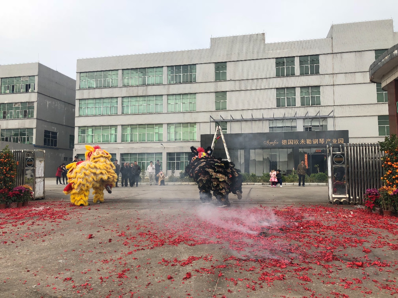 2月23日年初八,位于廣州的德國國寶博蘭斯勒鋼琴旗下歐米勒鋼琴廣州廠區(qū)鑼鼓喧天,醒獅高躍采青接福。醒獅舞不單國內(nèi)有名,且揚(yáng)名海外,海外的華人華僑均有舞醒獅的習(xí)俗。簡(jiǎn)單而隆重的傳統(tǒng)醒獅活動(dòng)讓廣州歐米勒工廠洋溢濃濃的節(jié)日氣氛,帶著躊躇斗志迎接新一年的挑戰(zhàn)!
