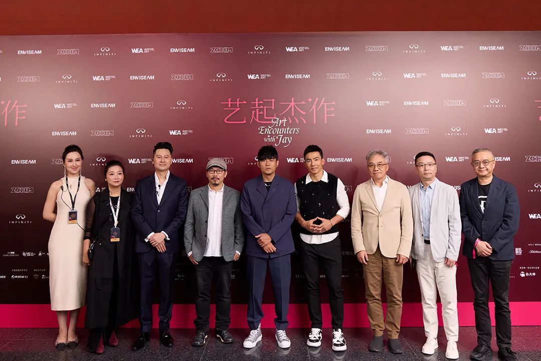 在10月15日下午舉辦的《藝起“杰”作》(Art Encounters with Jay)巡展上海站“VIP 預展”上,來自藝術界、演藝界、商業(yè)界、收藏界近百位嘉賓蒞臨開幕現(xiàn)場。策展人周杰倫偕同母親葉惠美,創(chuàng)作黃金搭檔方文山及好友劉畊宏一起出席了《藝起“杰”作》VIP 預展。主辦方與嘉賓相繼合影,并引導觀眾參觀展覽,開幕儀式由展覽聯(lián)合策展人周凈(Roena Zhou)主持,展覽聯(lián)合總策劃、聯(lián)合總監(jiān)制沈天舒和展覽藝術總監(jiān)李詩晨(Jazz Li)做了簡短發(fā)言與感謝致辭。