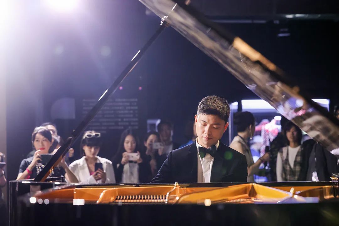 藝術家鮑楊在《藝起“杰”作》VIP 預展現(xiàn)場進行鋼琴獨奏